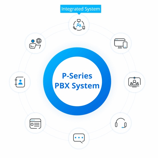 يعمل نظام P-Series PBX على جعل الاتصالات عن بعد وجهًا لوجه فورية وبسيطة وآمنة ومتفاعلة مع ميزات مكالمات الفيديو عبر الويب ومؤتمرات الفيديو 1:1 المدمجة.