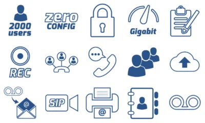 يدعم ما يصل إلى 2000 مستخدم، و200 حساب جذع SIP، وما يصل إلى 200 مكالمة متزامنة