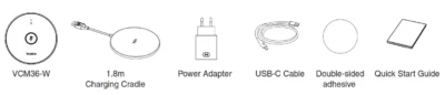 ميكروفون مؤتمرات الفيديو VCM36-W مهد الشاحن كابل يو اس بي سي بطول 1.2 متر محول الطاقة لاصق ذو الوجهين دليل البداية السريعة