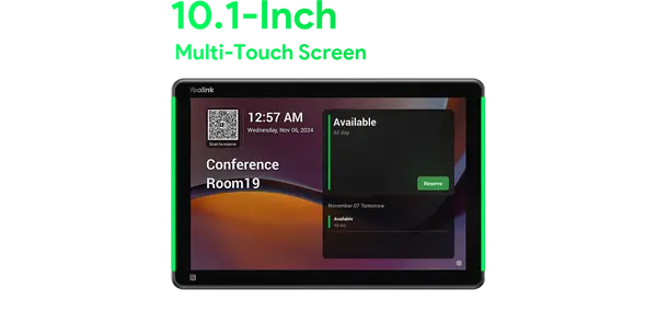 أهم مميزات يالينك RoomPanel Plus E2 اللوحة المخصّصة لجدولة غرف الاجتماعات، شاشة لمس 10.1 بوصة، واي فاي، بلوتوث، دعم PoE، أندرويد 13