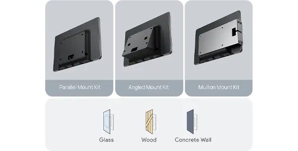 تأتي رووم بانل بلس E2 مع حوامل وشريط تثبيت، مما يتيح تركيبه بسهولة وبزوايا ميل قابلة للتعديل على مختلف الأسطح مثل الزجاج، الخرسانة، الخشب وغيرها، ومع دعمه لـ PoE أو DC، يصبح التركيب أكثر بساطة وتنظيمًا دون فوضى الأسلاك.