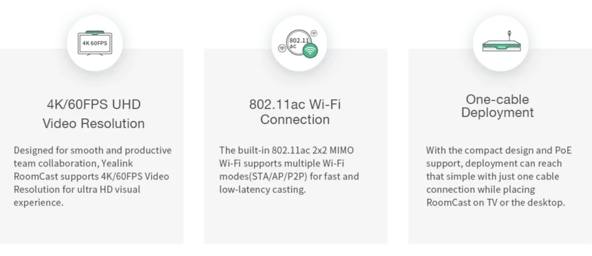 يالينك RoomCast – نظام عرض لاسلكي RoomCast، 4 شاشات، 4K، 60 إطارًا في الثانية، PoE، AirPlay