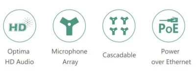 مجموعة 3 ميكروفونات مدمجة نطاق التقاط الصوت 20 قدمًا (6 أمتار) و360 درجة تقنية يالينك المقاومة للضوضاء الطاقة عبر الإيثرنت (PoE) يمكن أن تتتالي ما يصل إلى 4 وحدات